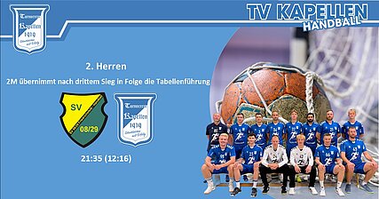 Das vom 3. Spieltag nachgeholte Duell zwischen dem SV Friedrichsfeld und der zweiten Mannschaft des TV Kapellen endete mit einem klaren 35:21-Erfolg für die Gäste. Nach einer zunächst ausgeglichenen Anfangsphase setzten sich die Kapellener ab der 15. Minute immer deutlicher durch und feierten am Ende den dritten Sieg im dritten Spiel.